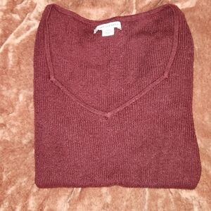 American Eagle Maroon Knit Long Sleeve Cotton Blend Top