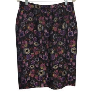 Beautiful Yeohlee skirt featuring a rich multicolor (pink, blue, purple, green) floral jacquard design on a black background. Tailored pencil silhouette that flatters and works perfectly for office wear or evening events. Back 1/4 zip closure. Timeless and elegant piece from a luxury designer.