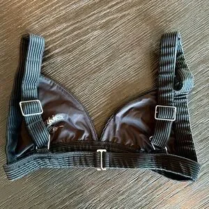 Frankies Bikinis Georgia Ribbed Bralette Bikini Top in Black | Size: Large