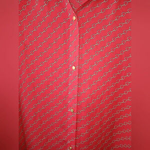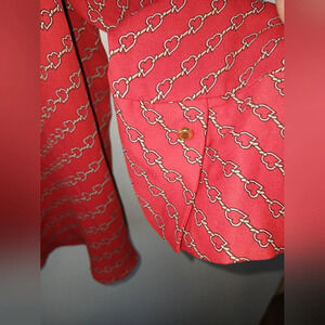 Liz Claiborne Career red long sleeve button down blouse. Chain heart design.