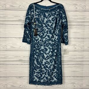 Tadashi Shoji Blue Lace Embellished Floral Cocktail Dress Size 14 NWT.