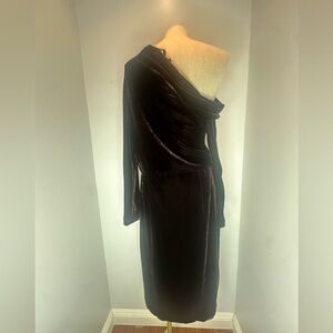 Cut in an off-the-shoulder silhouette, Theory's long-sleeve midi-dress is crafted of soft velvet and finished with a thigh-high front slit.