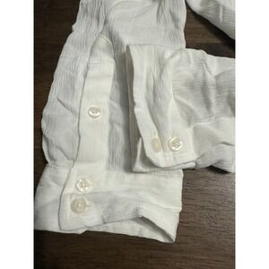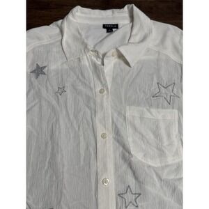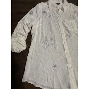 Torrid Shirt Womens Sz 1 Button Up Long Sleeve White Embroidered Stars Roll Tab