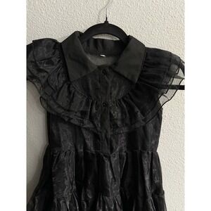 Wednesday Style Girls Black Ruffle Tiered Dress Size 130 7/8 Whimsigoth Witchy