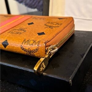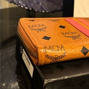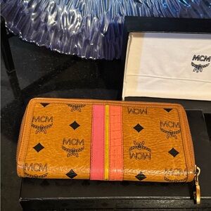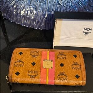 MCM Cognac Leather Wallet w/ Stripe Detail