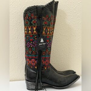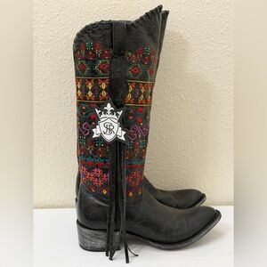 Johnny Ringo Sagrada Black Colorful Embroidered Tall Fringe Western Cowboy Boots