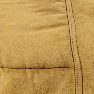 Warm and cozy sherpa-lined jacket with a classic tan exterior and soft faux-shearling interior. Great everyday layer with a comfortable fit and button-front closure. Has one small spot near the pocket (shown). Good condition overall.