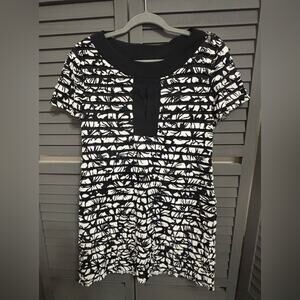 Fitted Black and White Micro Ruffle Short Sleeve Dress with Keyhole Neck Size 14