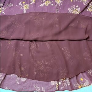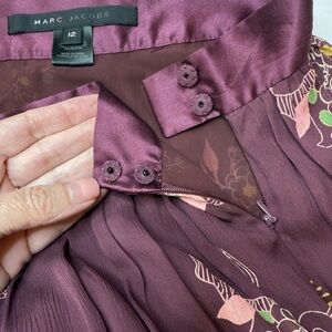 Marc Jacobs Silk Floral Ribbon Tiered Bohemian Midi Skirt Maroon Wine Size 12