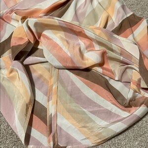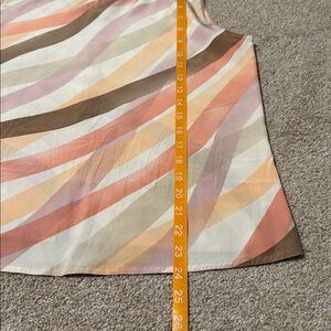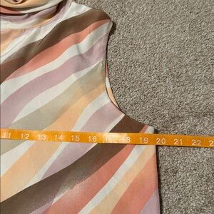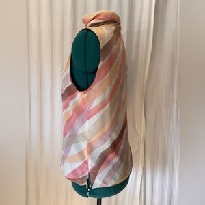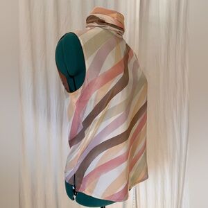 Stylish sleeveless top with a wave pattern. Soft pastel colors for a chic look. Versatile piece can be dressed up for the office or dressed down with denim. Gently used. No blemishes noted.