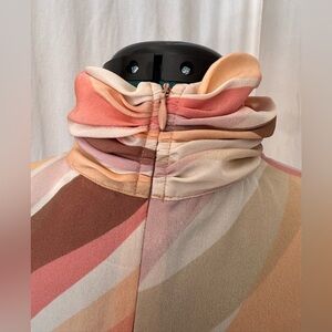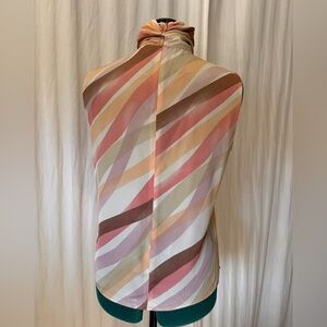 Vintage Austin Reed brown white orange Wave Sleeveless mock Turtle Top size 10