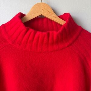 Bright red cowl neck sweater. Soft and cozy. Ideal for cool weather. No stains, rips/holes etc. final photos have pit to pit and length measurements