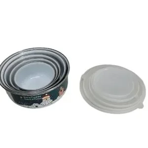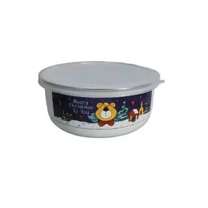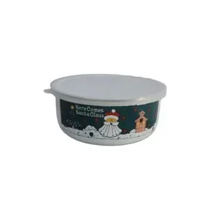 Vintage 10pc Christmas Santa Enamel Metal Nesting Bowl Stacking Set w/Lids New