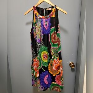 Desigual Aya Multi Coloured Sleeveless Beaded Dress Size Medium Or 38
