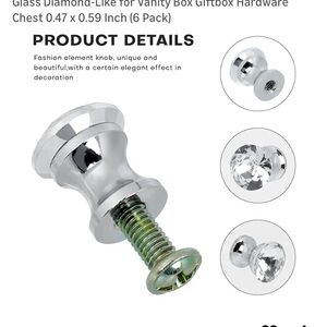 Small Crystal Knobs for Jewelry Box Mini Door Knobs Glass Diamond-Like for Vanity Box Giftbox Hardware Chest 0.47 x 0.59 Inch (6 Pack)