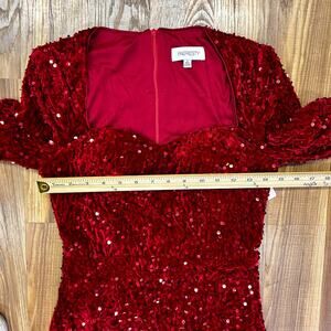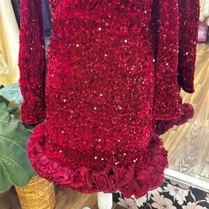 Red Sequin Sexy NYE Coquette Party Dress Rosette Hem Mini Sweetheart Holiday SM