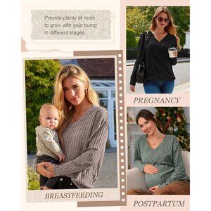 3 Pack Oversized Women's Maternity Nursing Tops Vneck Cozy Long Sleeve — Perfect for comfort and style during pregnancy and postpartum.