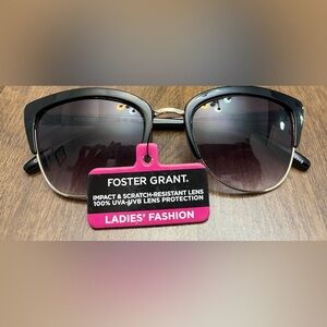 Stylish black sunglasses by Foster Grant. Offers full UVA-UVB protection. Scratch-resistant lenses.