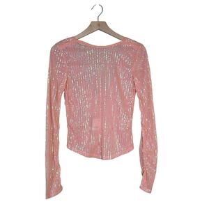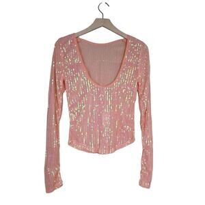 Free People Womens S Unapologetic Sequin Long Sleeve Top in Peach NEW