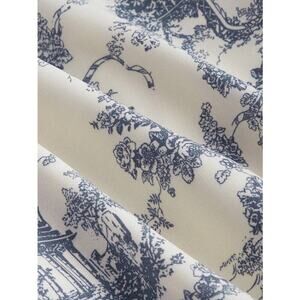 * Toile De Jouy Print: Features a beautiful and intricate blue and white Toile pattern depicting pastoral scenes and floral motifs.