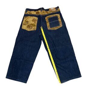 Mens GIO Authentic Jeans Wear Denim Pants Gold Velvet & Crown Graphic Size 34