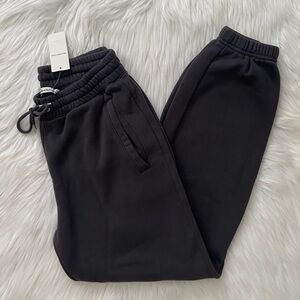 high rise sweatpants in heavyweight soft a&f max fleece fabric, featuring relaxed sunday silhouette, an elasticated waistband, exterior drawcords with metal aglets, pockets and banded cuffs. size small. color: dark gray