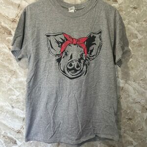 Keywords: pig t-shirt, bandana pig, graphic tee, gray t-shirt, girlie girl originals, gildan, casual top, womens t-shirt, medium t-shirt, novelty tee, animal graphic, cute t-shirt, printed tee, short sleeve shirt