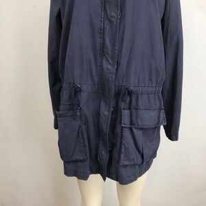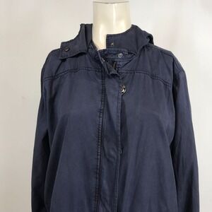 SEJOUR - WOMEN'S 0X - NAVY ZIP & SNAP CLOSURE HOODED CARGO JACKET COAT