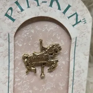 Pin Kin Estate Gold Tone Carousel Horse Brooch Pin