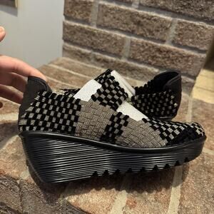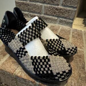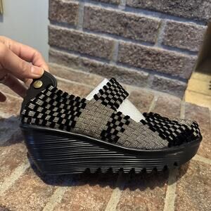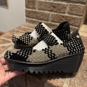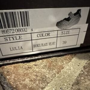 New Bernie Mev Lulia Wedge Mary Jane Shoes Size 39 EU US8 Bronze/Black Velvet