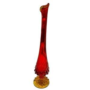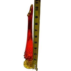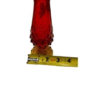 Vintage Amberina Art Glass Hobnail Footed Swung Stretch Bud Vase 11" T x 2.5" W