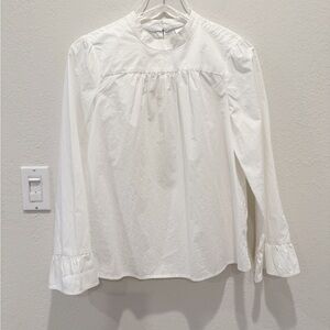 ANTHROPOLOGIE MAEVE Poplin Cotton Bell Sleeve Blouse in White