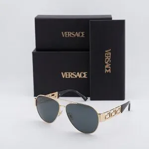Versace VE2289 100287 Sunglasses Gold Aviator Frame, Dark Grey Lenses