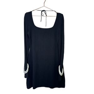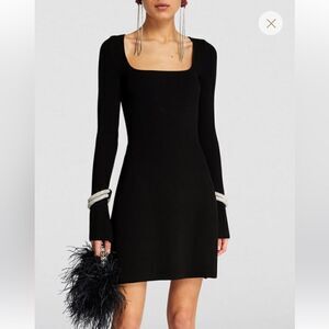NEW MACH & MACH Olivia Crystal Bracelet Rib Knit Mini Dress Black XL
