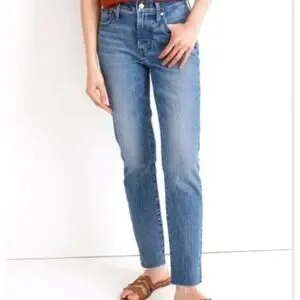 Madewell Medium Wash The Mid-Rise Perfect Vintage Jean Size Raw Hem Size 33