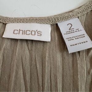 CHICOS Size 2 (Large) Crinkle Shimmer Tank Top Beige Stretchy Boho Relaxed Chico's