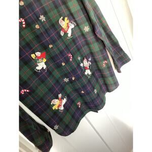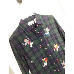 Casey & Max Women Plaid Flannel Holiday Button Front embroidered Top Blue Small