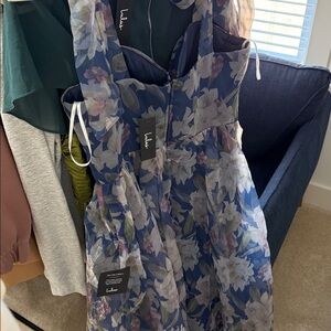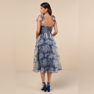 Exceptionally Marvelous Blue Floral Organza Bustier Midi Dress - never worn!