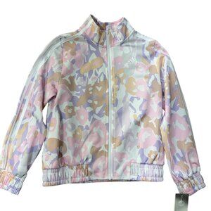 Adidas Pastel Pink Floral Camo Allover Print Full Zip Light Jacket Girls S 7/8
