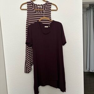 Elevate your everyday style with this gorgeous Logo by Lori Goldstein Twin Set in a size medium. This pre-loved set includes a short sleeve tunic and striped two-tone racer back tank perfect for layering or wearing separately. The soft fabric and relaxed fit make it a versatile and comfortable option for any occasion.