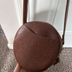 Naturally Beautiful Tan Embossed Leather Crossbody: This original, simple design is handcrafted with high quality leather that will last for a lifetime; full grain leather gets better as it ages, naturally conditioning & developing a unique character