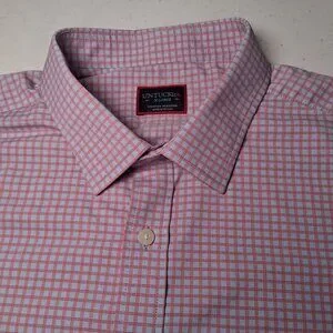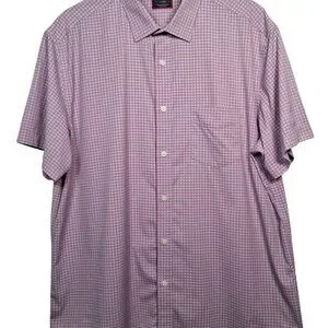UNTUCKit Shirt Men Large Performance Stretch Short Sleeve Blue Pink Plaid