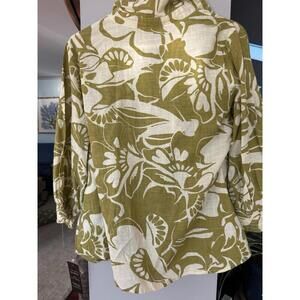 Unique Spectrum by MLLE Womens blouse L green white botanical 100% cotton