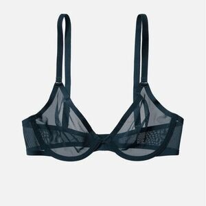 Cuup the plunge bra 36c ink black blue sheer mesh underwire unlined bralette