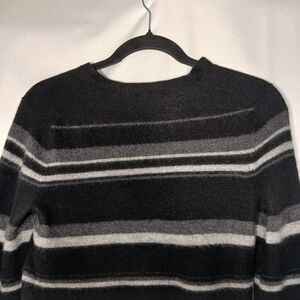 SHRUNKEN SWEATER! GOOD CONDITION!!! Preowned. This was mistakenly placed in the dryer. The label instructions read: to Dry Flat or Dry Clean. ***Please check New Measurements, as this sweater is "not medium" as the original label suggests.*** Now a small size. The Banana Republic Men's Sweater is an extra fine merino sweater in a solid pattern with tight-knit construction. ***(This pullover sweater features long sleeves and comes in an original size M, although it may have shrunk slightly. Again, please check Measurements in pictures) ***The sweater is suitable for casual occasions and is made of wool, with a color combination of striped black, gray, and white. Perfect for winter, fall, and spring; this sweater is ideal for walking and outdoor activities, adding a touch of style to anyone's wardrobe.