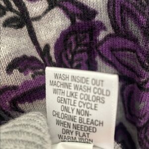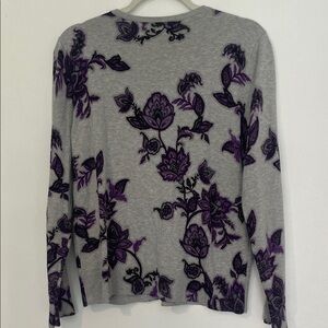 Croft & Barrow Heather Gray Cardigan with Purple Floral Pattern