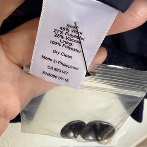 New Without Tags. 2-Button Blazer. 3-Button Cuffs. Wool Blend. Dry Clean.