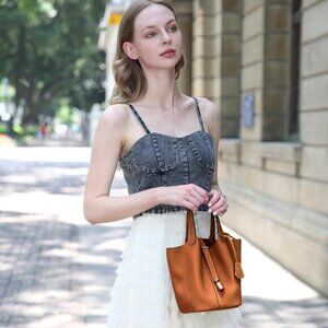 ⚡Women 01Brown Trendy Genuine Leather Imported Bucket Bag Tote Top Handle Purses