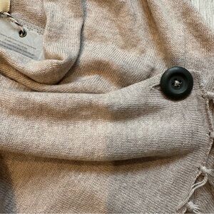Matilda Jane Come On Over Wrap Fringe Cardigan in Oatmeal. Fun cardigan that can hang open or close with two buttons. Nice, neutral, oatmeal color.