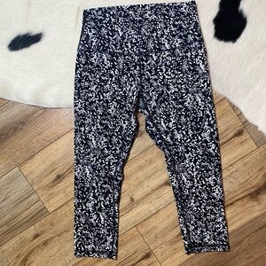 Style: They appear to be a cropped length, finishing mid-calf. Common Lululemon styles with this length include the Wunder Under Crop (approximately 21") or the Align Crop (approximately 21").